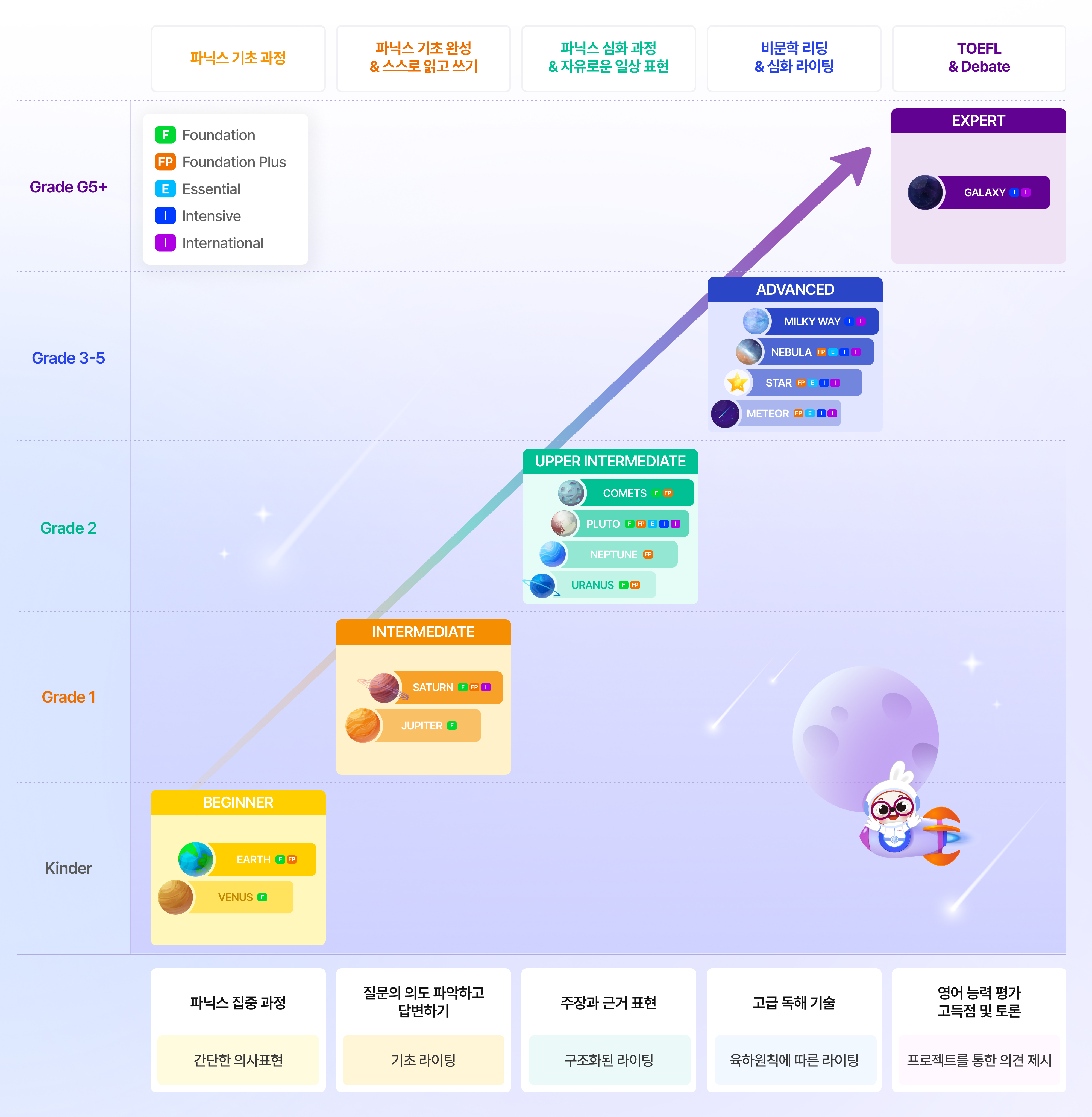 Venus단계는 기본 알파벳과 대표 음가의 학습부터 시작하는 과정입니다.